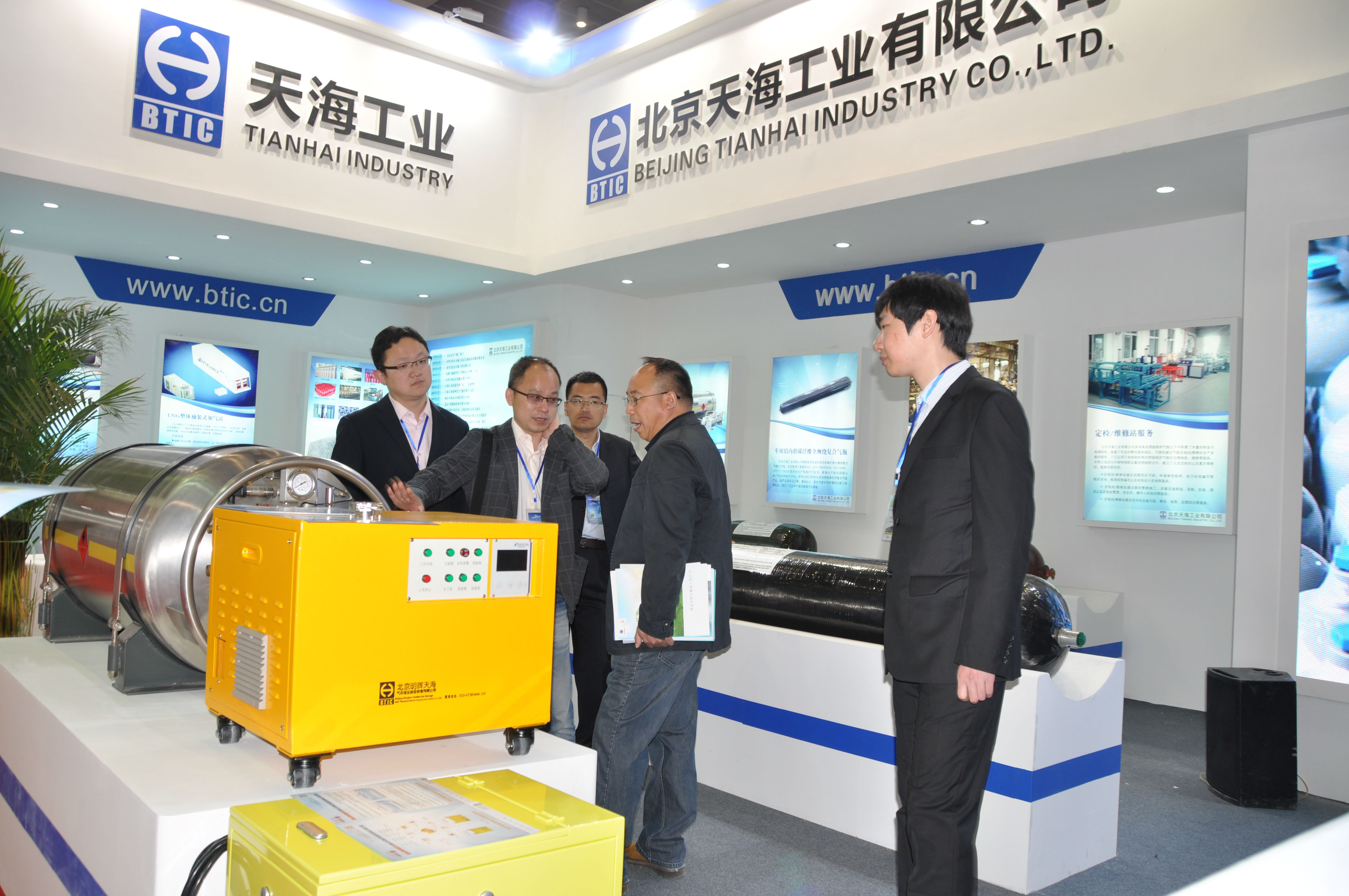 天海工業(yè)秉承高效、環(huán)保、節(jié)能的理念,致力于推動(dòng)清潔能源汽車燃料系統(tǒng)的發(fā)展,提供天然氣儲(chǔ)運(yùn)領(lǐng)域全套解決方案。此次展會(huì),不僅展出了公司全新研制的車用鋁內(nèi)膽碳纖維全纏繞復(fù)合氣瓶(CNG-3型瓶)、還有具有國內(nèi)先進(jìn)技術(shù)的車用SI型LNG氣瓶、更有可為客戶提供全面的LNG氣瓶定檢站/維修服務(wù)站解決方案,吸引了天津公交、濟(jì)南公交、中通客車、青年客車等眾多客戶及廠商前來溝通洽談。天海工業(yè)豐富的產(chǎn)品種類和優(yōu)質(zhì)的服務(wù)得到客戶的廣泛認(rèn)可,體現(xiàn)了天海工業(yè)在天然氣產(chǎn)業(yè)鏈中豐富的裝備制造能力以及強(qiáng)大的品牌影響力。