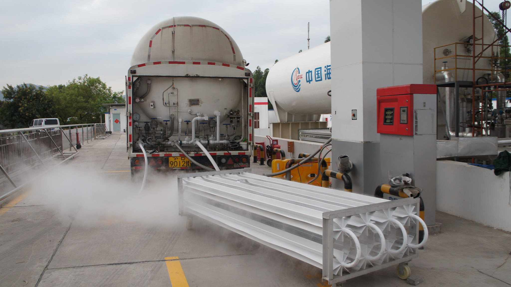 L-CNG加氣站是LNG與CNG兩種加氣方式的有機組合,是一種正在興起、具有良好推廣應用前景的加氣站類型。它以液相、低溫的天然氣進站,通過液相泵加壓、氣化后實現對汽車加氣,無需高耗電量和噪音大的氣體壓縮機,站內用能較少,因而加壓效率高、運行費用低。